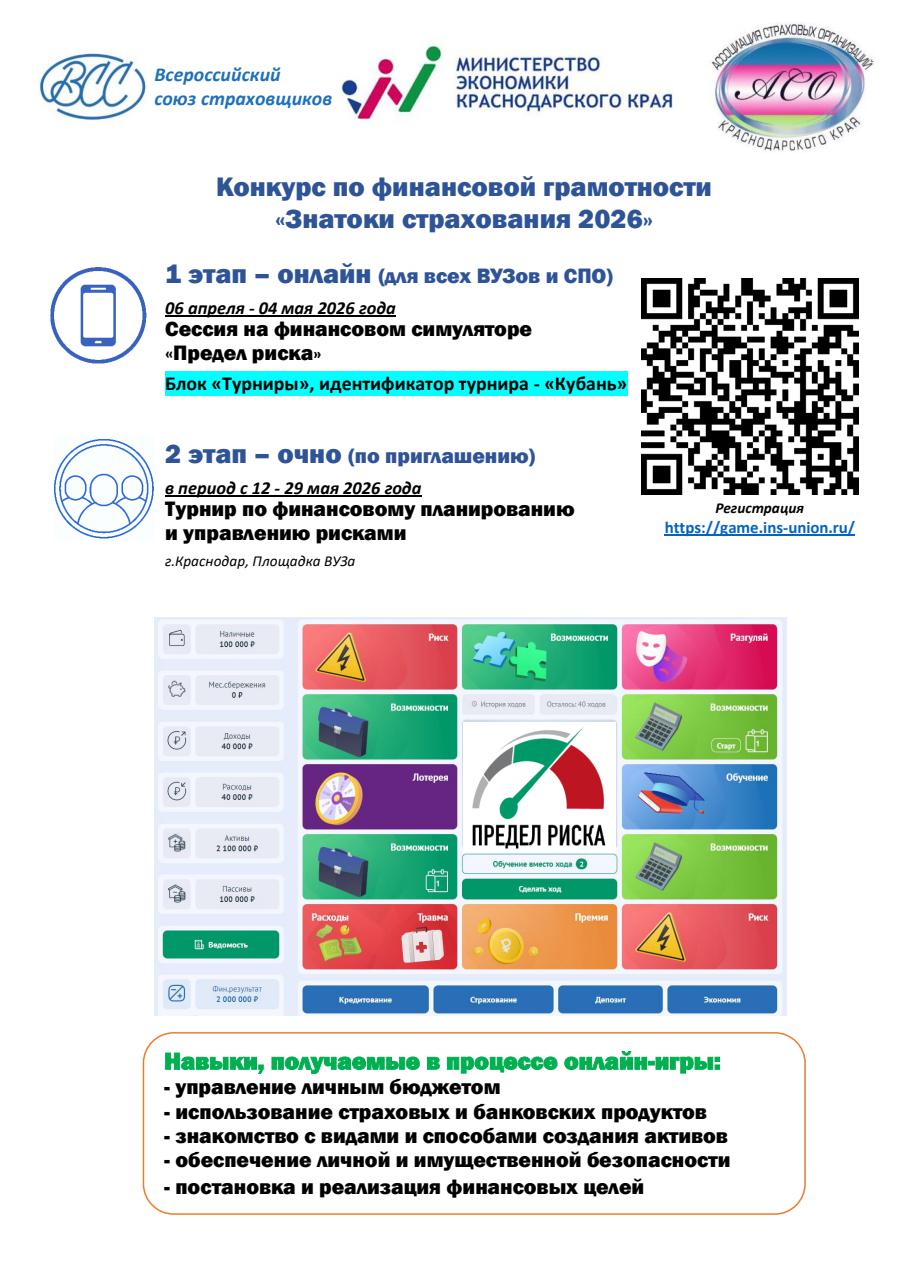 Также материалы можно скачать на сайте «Финансовое просвещение населения Краснодарского края» в разделе «Эстафеты «Мои финансы»: https://fingram.krasnodar.ru