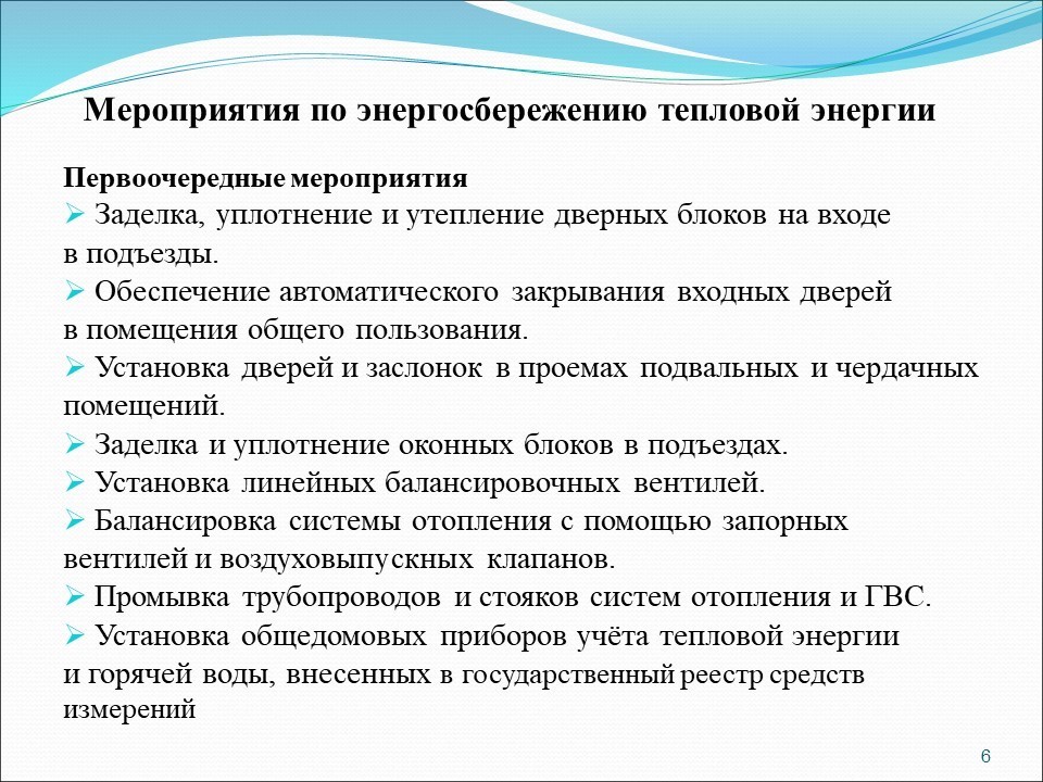 - устанавливайте на батареи отопления терморегуляторы, обеспечивающие в комнатах заданную комфортную температуру воздуха (экономия до 15%).