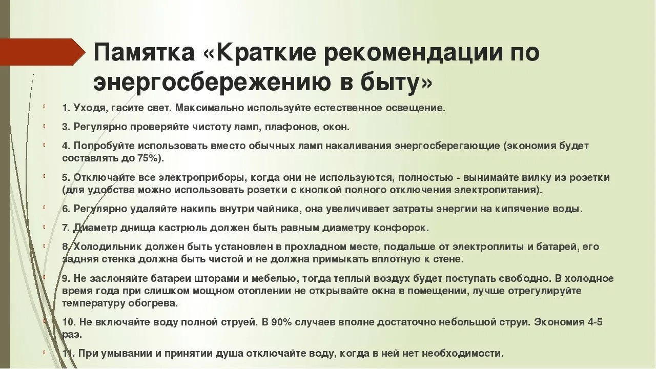 ПАМЯТКА ПО ЭНЕРГОСБЕРЕЖЕНИЮ